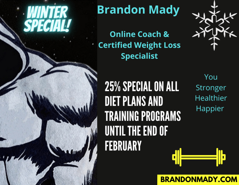 Take advantage and benefit from the winter promo in place from January until the end of February 2022, with a professionally qualified, certified and dedicated Online Coach and Weight loss specialist. Brandon Mady.